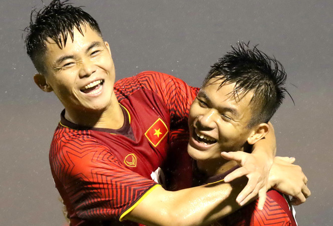 Ngô Tùng Quốc (bên trái) là một trong 5 cầu thủ U21 được triệu tập nhờ thi đấu tốt tại giải U21 quốc tế 2018