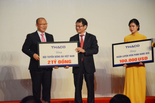 Cũng ở buổi lễ, Tập đoàn Thaco tặng thưởng 2 tỉ đồng cho đội tuyển Việt Nam và 100.000 USD cho HLV Park Hang-seo. Tuy nhiên, nhà cầm quân người Hàn Quốc tuyên bố dành toàn bộ số tiền mà Thaco tặng để đầu tư cho bóng đá Việt Nam và tặng cho người nghèo.