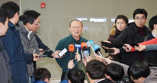 Báo chí Hàn Quốc phỏng vấn HLV Park tại sân bay, chiều 18-2