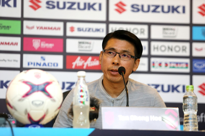 HLV Tan Cheng Hoe tại họp báo trước trận (Ảnh: Vũ Vy)