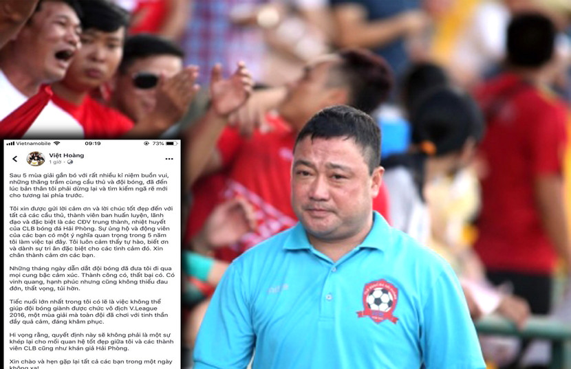 "Hi vọng rằng, quyết định này sẽ không phải là một sự khép lại cho mối quan hệ tốt đẹp giữa tôi và các thành viên CLB cũng như khán giả Hải Phòng. Xin chào và hẹn gặp lại tất cả các bạn trong một ngày không xa!", HLV Trương Việt Hoàng kết.