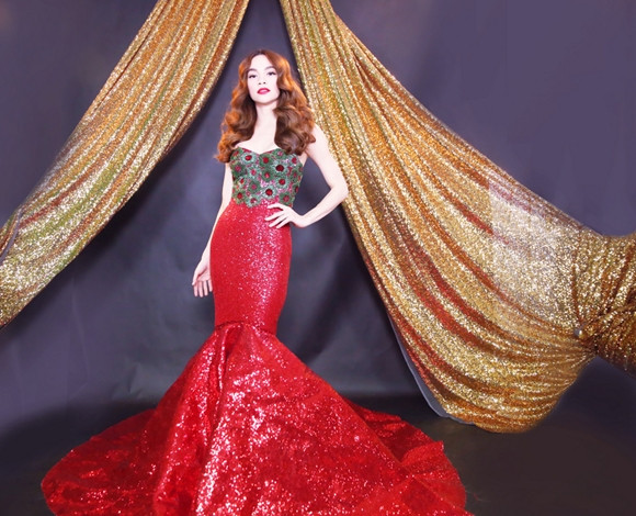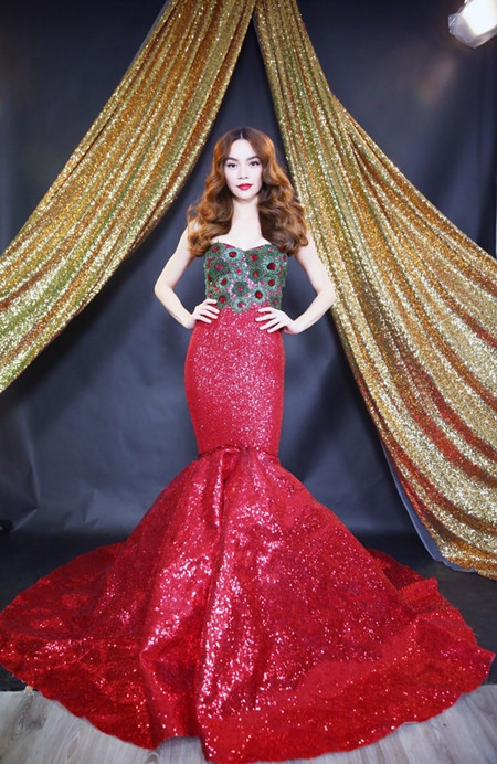Hồ Ngọc Hà với chiếc đầm đuôi cá lộng lẫy với chất liệu sequin màu đỏ.