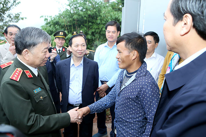 Phát biểu tại lễ trao nhà tình nghĩa cho gia đình anh Hờ A Dế, một trong các hộ nghèo tại bản Nậm Pố 4, Đại tướng Tô Lâm nhấn mạnh: Để người dân yên tâm lao động, sản xuất, Bộ Công an đã chỉ đạo các đơn vị trực thuộc, Công an tỉnh Điện Biên tập trung hỗ trợ xây nhà ở cho các hộ nghèo trên địa bàn huyện. Dự kiến trước mắt, sẽ xây dựng khoảng 500 - 600 căn nhà cho các hộ nghèo theo phương châm Nhà nước hỗ trợ, cộng đồng giúp đỡ hộ gia đình làm nhà.