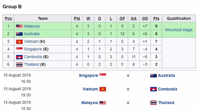 Xếp hạng và lịch thi đấu vòng cuối bảng B