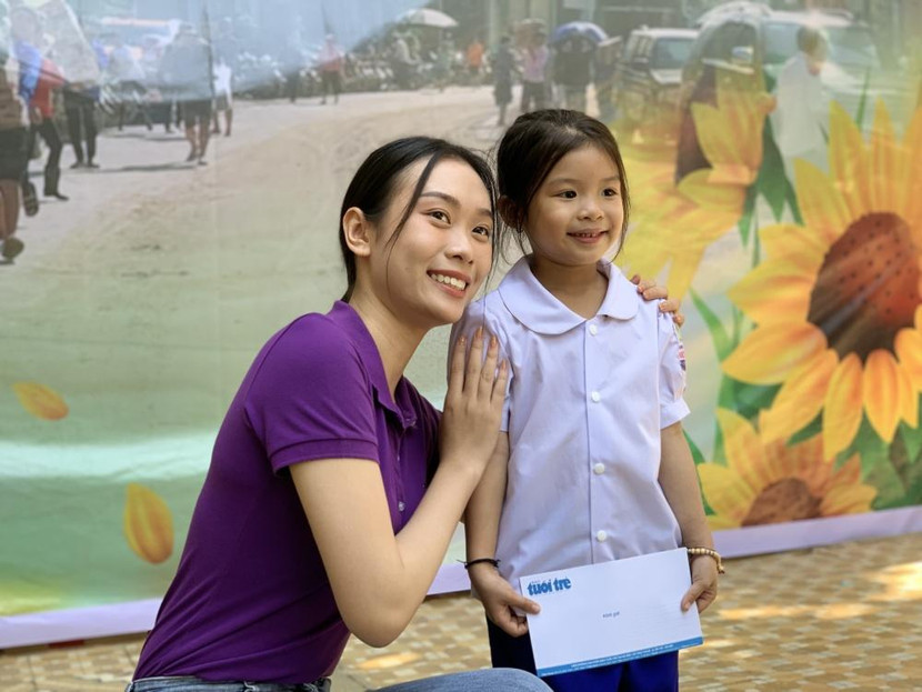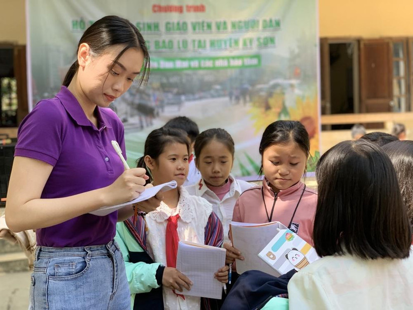 Ngoài 300 triệu đồng gửi tặng người dân huyện Kỳ Sơn, Nghệ An, hoa hậu Ban Mai còn đồng hành cùng chương trình "Tiếp sức đến trường" tặng 5 suất học bổng (15 triệu đồng/suất) cho 5 tân sinh viên.
