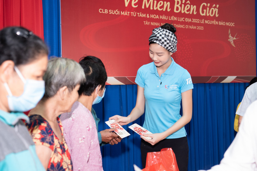 ANTD.VN -"Hoa hậu Liên lục địa 2022" Lê Nguyễn Bảo Ngọc vừa thực hiện chuyến thiện nguyện thứ 2 tại biên giới Tây Ninh, tiếp nối chuỗi hoạt động từ thiện có chủ đề “Tết hạnh phúc".
