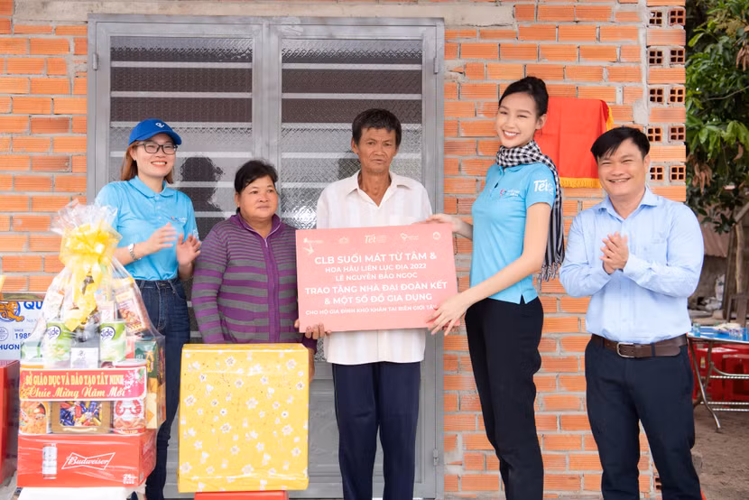 Bên cạnh đó, trong chuyến thiện nguyện lần này, nàng hậu đến từ Cần Thơ cùng mẹ của mình đã nấu một bữa ăn mừng nhà mới cho hộ dân có hoàn cảnh đặc biệt khó khăn ở Tây Ninh. Người đẹp cho biết, trước đó cô đã đến khảo sát và quyết định hỗ trợ xây nhà cho gia đình ông Cháp Panh với mong muốn đem đến một mùa Tết thật sự ấm áp, đong đầy tiếng cười và hạnh phúc cho gia đình ông vốn có cuộc sống rất khó khăn, làm nghề cắt cỏ thuê với thu nhập mỗi ngày của cả gia đình không đến 100.000 đồng và phải sống ở một căn nhà nhỏ, cũ và thiếu thốn nhiều thứ.