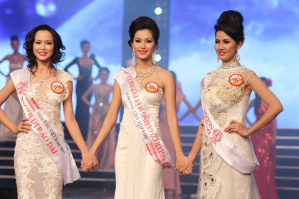 Hoa hậu Đặng Thu Thảo cùng hai Á hậu Dương Tú Anh và Đỗ Hoàng Anh
