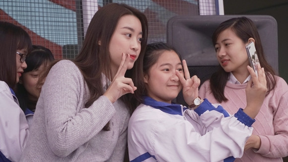 Những cơn mưa nặng hạt bất ngờ vẫn không “làm khó” được HH Đỗ Mỹ Linh, cô vẫn luôn rạng rỡ, vui vẻ giao lưu với các thầy cô và các em học sinh nơi đây. Nhận được nhiều sự yêu mến từ các em học sinh, HH Đỗ Mỹ Linh cảm thấy rất xúc động và mong muốn sẽ có thêm những dịp gặp gỡ lại các em. Hoa hậu Đỗ Mỹ Linh còn cùng các em hòa giọng hát vang các bài hát và cùng chụp các bức ảnh kỷ niệm thân tình.