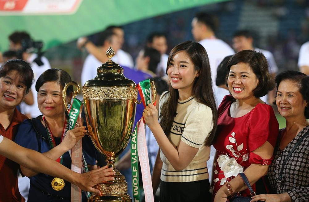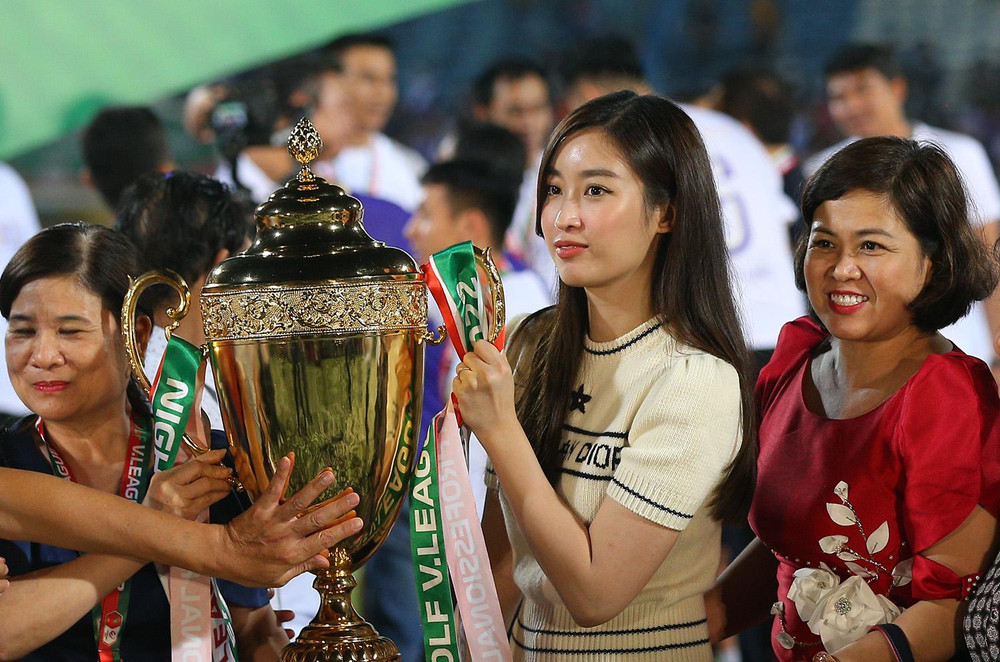 Hoa hậu Đỗ Mỹ Linh tươi rói ăn mừng CLB Hà Nội vô địch