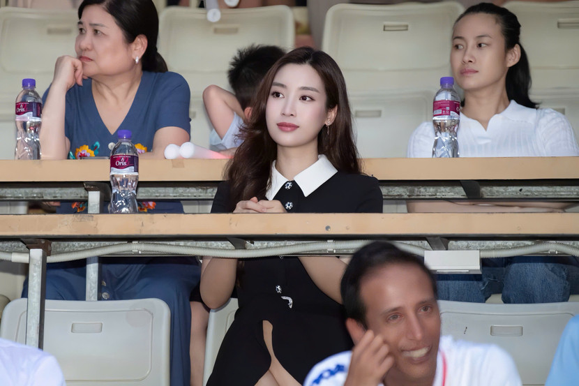 | Hoa hậu Đỗ Mỹ Linh xuất hiện thanh lịch và rạng rỡ ở phía dưới khán đài |