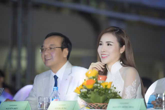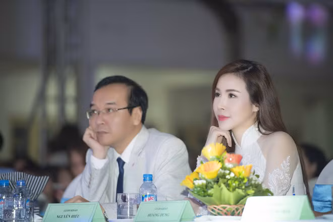 Nhìn các nữ sinh trình diễn và khoe tài trên sân khấu, Hoa hậu Hoàng Dung thổ lộ, cô lại chợt nhớ đến cảm xúc khi còn là thí sinh dự thi "Hoa hậu Áo dài Việt Nam tại Úc 2017" và trở thành người hạnh phúc nhất trong đêm thi này khi đăng quang.