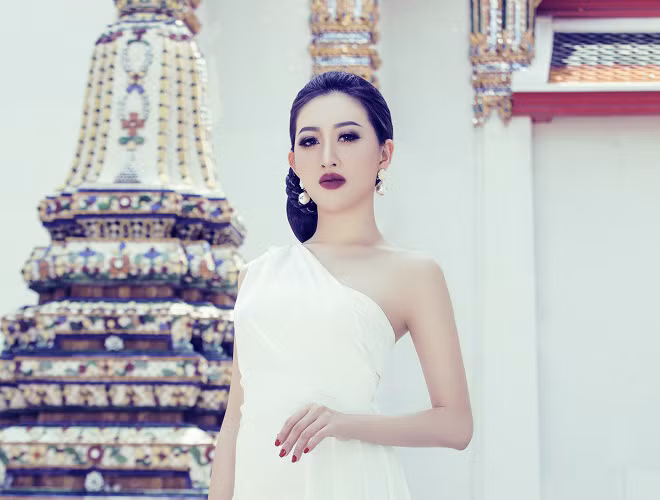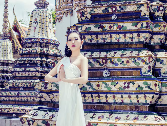 Hoa hậu Huỳnh Thúy Anh khoe vẻ đẹp quyền quý ở xứ sở chùa vàng