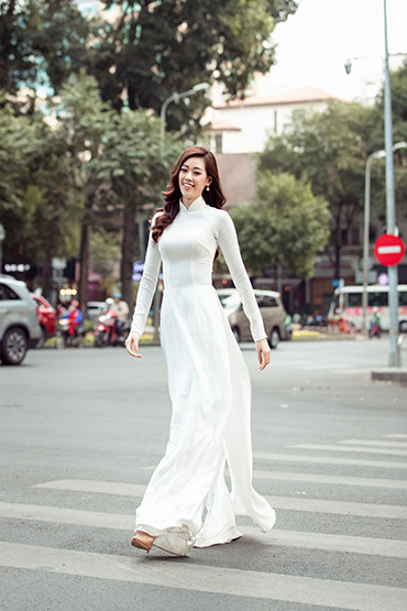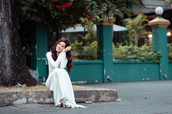 Hoa hậu Khánh Vân duyên dáng trong tà áo dài dạo phố ngày cận Tết