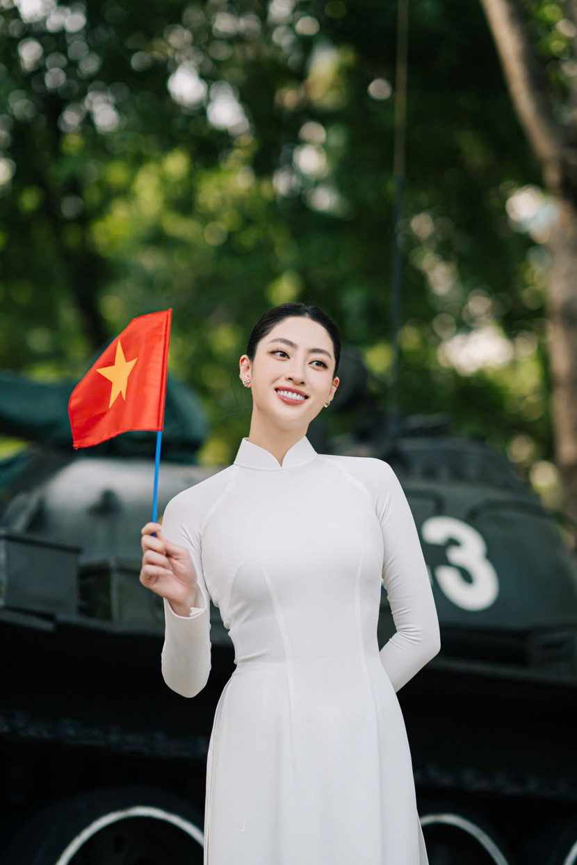 Sự xuất hiện của Lương Thùy Linh trong bối cảnh tại Dinh Độc Lập, với áo dài trắng và áo bà ba, là sự giao thoa giữa quá khứ và hiện tại. Nàng hậu không chỉ thể hiện lòng tri ân, mà còn kêu gọi giới trẻ hãy hiểu và tự hào về lịch sử vẻ vang của đất nước. Kỷ niệm 50 năm ngày đất nước thống nhất, bộ ảnh là lời nhắc nhở đầy xúc động: "Chúng ta hôm nay đang được sống trong hòa bình, là nhờ bao người đã sống, đã chiến đấu và có khi là ngã xuống trong những tà áo giản dị như thế."