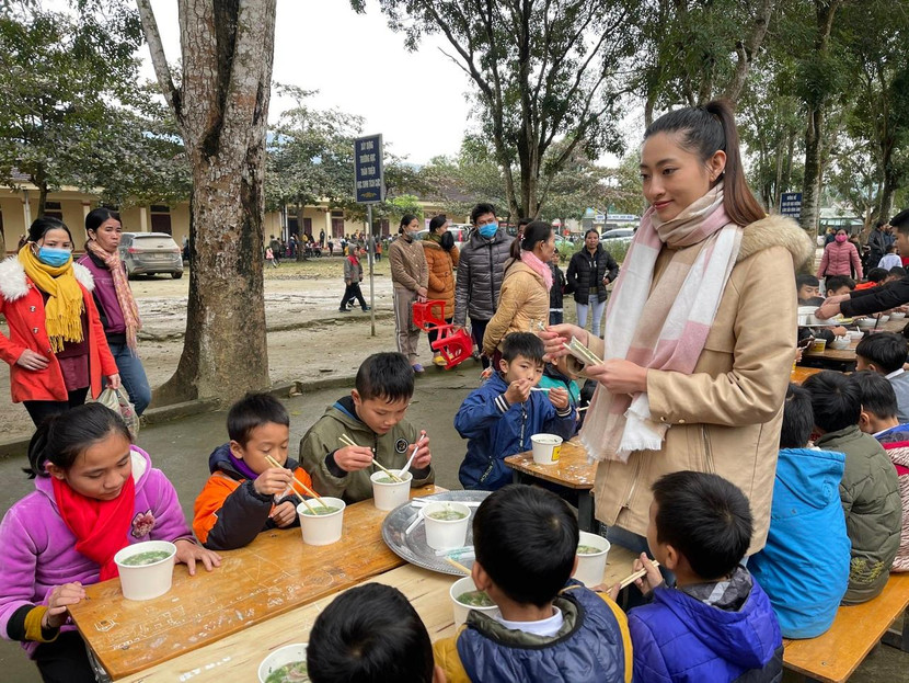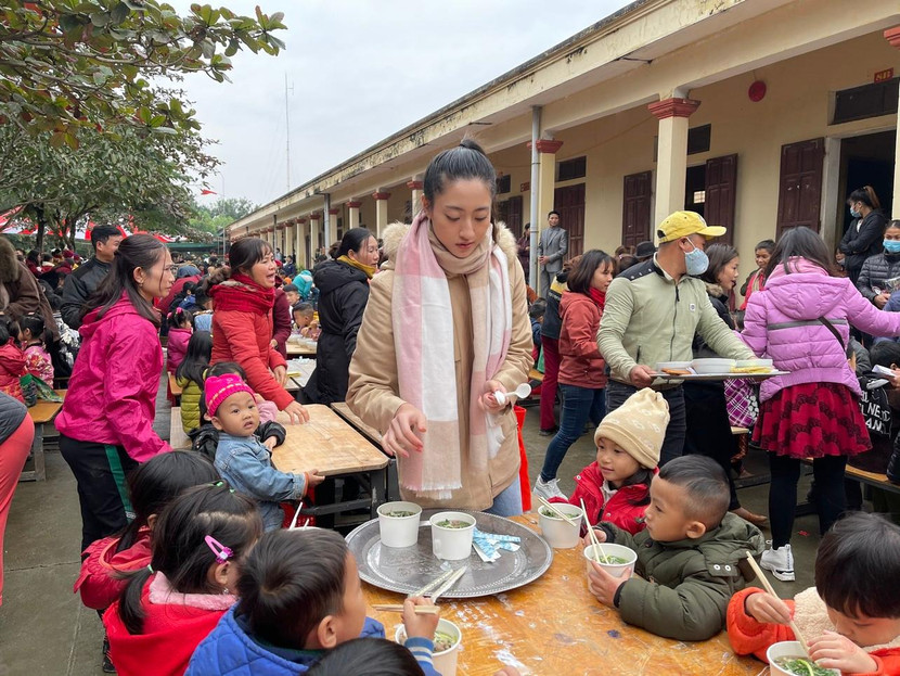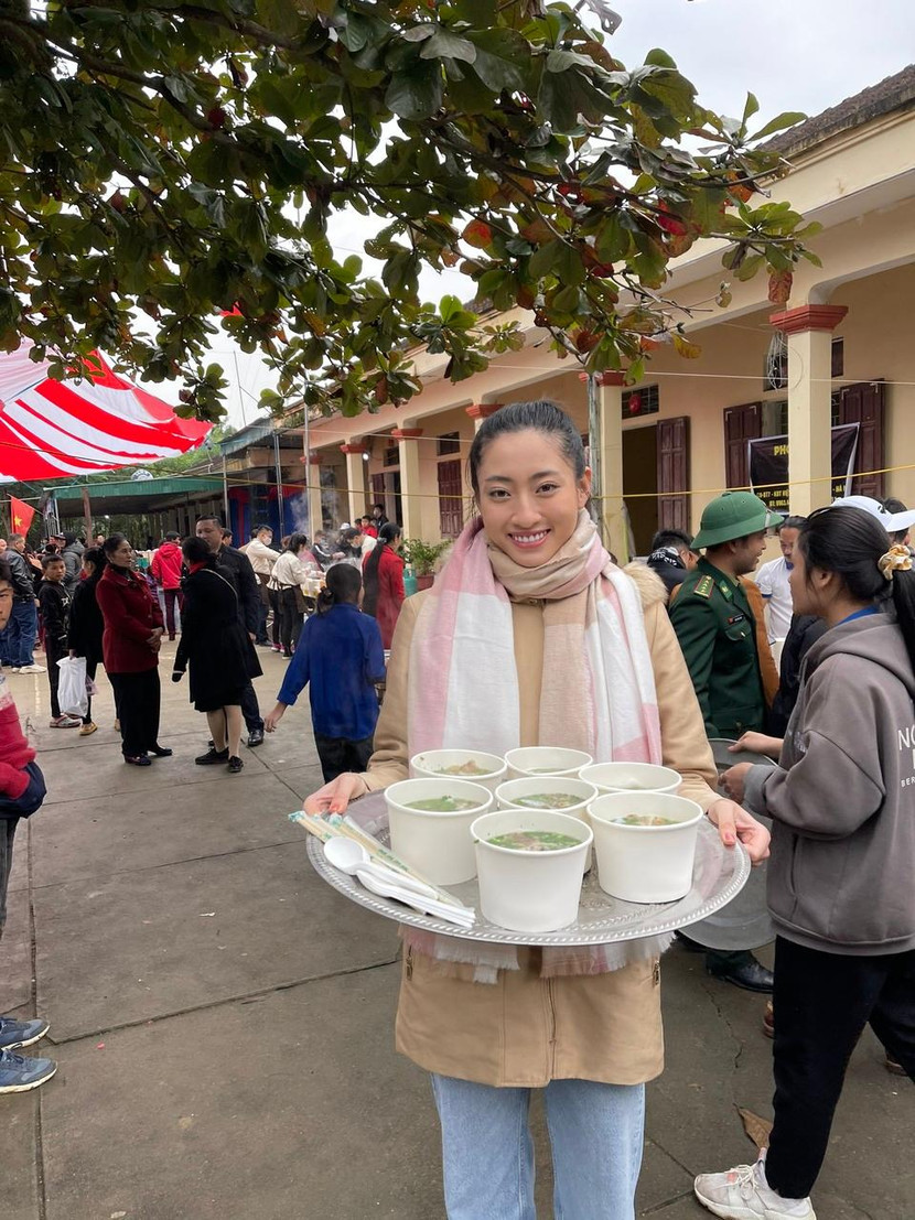 Cũng trong chuyến đi này, với mong muốn lan toả những giá trị nhân văn đến vùng xa xôi hẻo lánh, Lương Thuỳ Linh đã có mặt từ sáng sớm để giao lưu và trao quà cho các em nhỏ tại bản Mà, huyện Thanh Chương, Nghệ An. Không chỉ tham gia vào hoạt động nấu phở mà cô nàng còn tận tay phục vụ và xúc ăn cho các em nhỏ. Bên cạnh đó, nàng hậu còn trao các suất học bổng của chương trình "Ngày của Phở" cho các em học sinh có hoàn cảnh khó khăn đạt thành tích cao trong học tập. Đóng vai trò quan trọng tại sự kiện đầy ý nghĩa, Lương Thuỳ Linh cho biết, chứng kiến cảnh trời lạnh nhưng rất đông phụ huynh đưa con em mình đến để thưởng thức món phở do mình và mọi người nấu, cô rất xúc động.