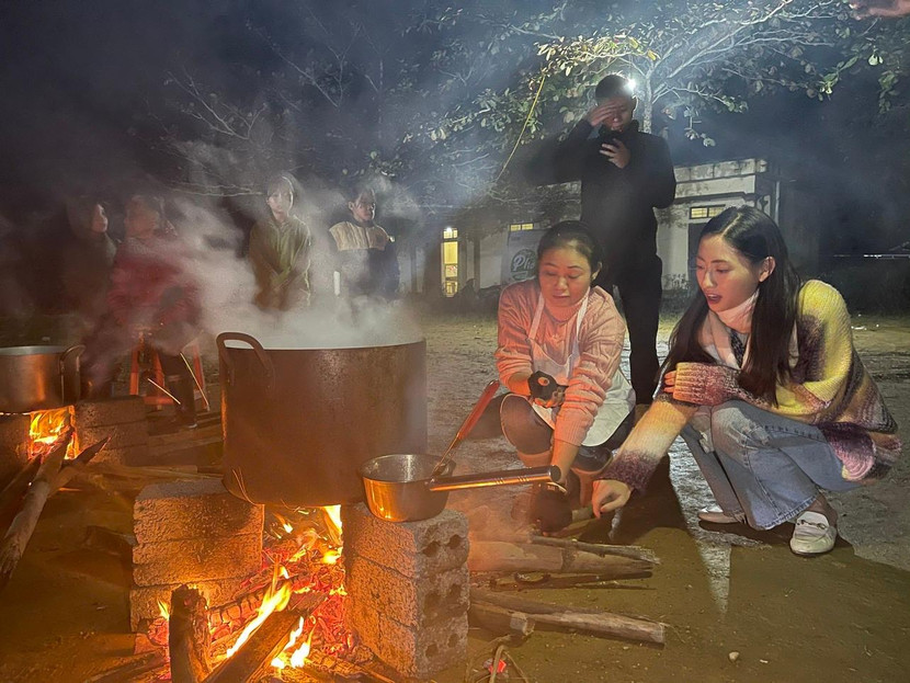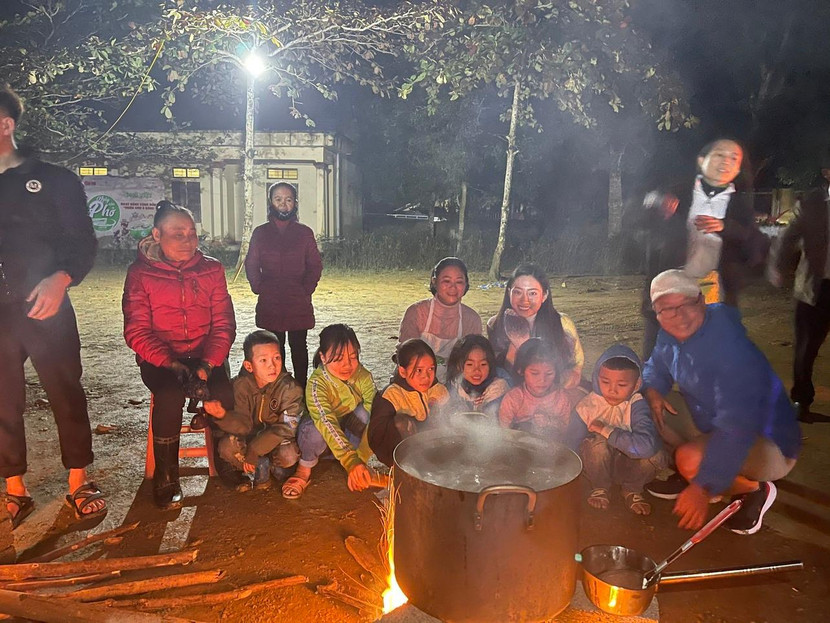 Cụ thể, mới đây Lương Thuỳ Linh đã có mặt tại huyện Thanh Chương, tỉnh Nghệ An, trực tiếp tham gia vào việc chuẩn bị những nồi nước phở thơm ngon để chiêu đãi các em nhỏ nơi đây. Mặc dù nấu trong điều kiện rừng núi, thiếu thốn về cơ sở vật chất song cô cùng các thành viên khác vẫn cặm cụi làm xuyên đêm, dưới thời tiết lạnh 12 độ C để đảm bảo đủ số lượng phở bằng bếp củi.