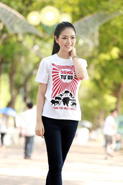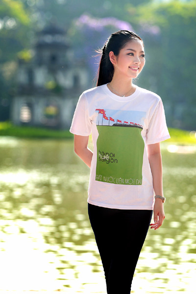 Người đẹp xứ Thanh cũng rất thích thú với những chiếc áo có in hình tranh cổ động