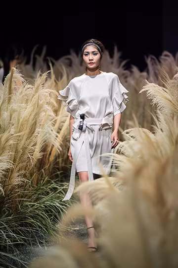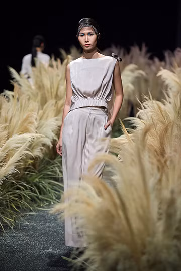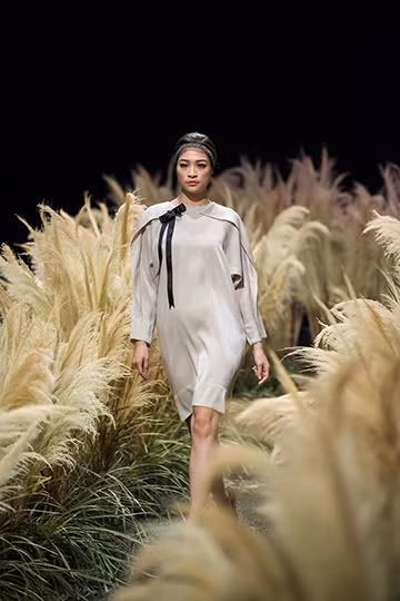 BST Ngọc Hân giới thiệu tối qua (24/2) có tên 'Ánh Kim', được lấy cảm hứng từ màu sắc của kim loại. Các gam màu chủ đạo cô lựa chọn gồm ghi xám, nâu xám, kết hợp với điểm nhấn là những hoạ tiết ruy băng, tạo điểm nhấn cho từng trang phục. Nếu ở những BST trước, Ngọc Hân theo đuổi việc sáng tạo hoạ tiết độc đáo thì lần này, cô hoàn toàn sửa dụng chất vải trơn cùng những đường cắt 3D, tạo phom dáng phóng khoáng, nhưng không kém phần hiện đại, trẻ trung và nữ tính.