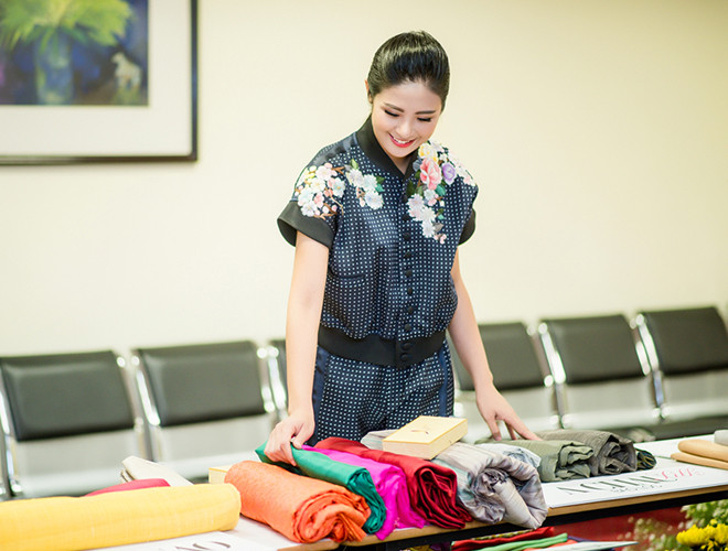 Hoa hậu Ngọc Hân giới thiệu bộ sưu tập mới tại "thủ phủ" của tơ lụa Việt Nam