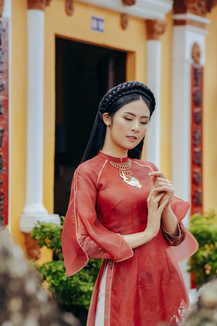 Tâm đắc với ý tưởng này, mới đây Ngọc Hân đã mang theo những mẫu áo dài trong bộ sưu tập trên vào Cần Thơ để lưu lại những khoảnh khắc mặc áo dài ở ngôi nhà cổ Bình Thuỷ. Người đẹp cho hay, ngôi nhà tuổi đời 150 năm với kiến trúc cổ độc đáo ở Cần Thơ rất phù hợp với tinh thần bộ sưu tập của mình.