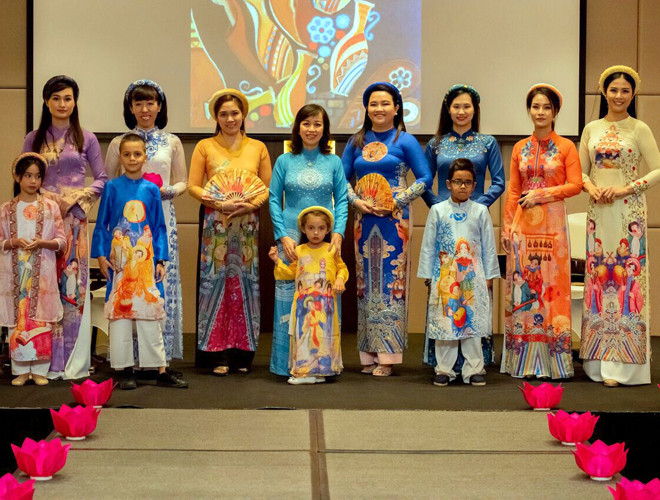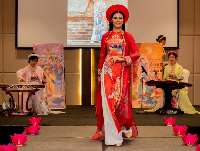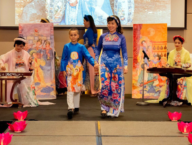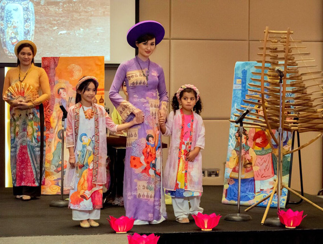 ANTD.VN - Hoa hậu Ngọc Hân đảm nhận vị trí vedette bên cạnh các người mẫu không chuyên là những cán bộ nữ của Đại sứ quán Việt Nam, Đại sứ quán Philippines tại Ả-rập Xê-út và nhiều em nhỏ...