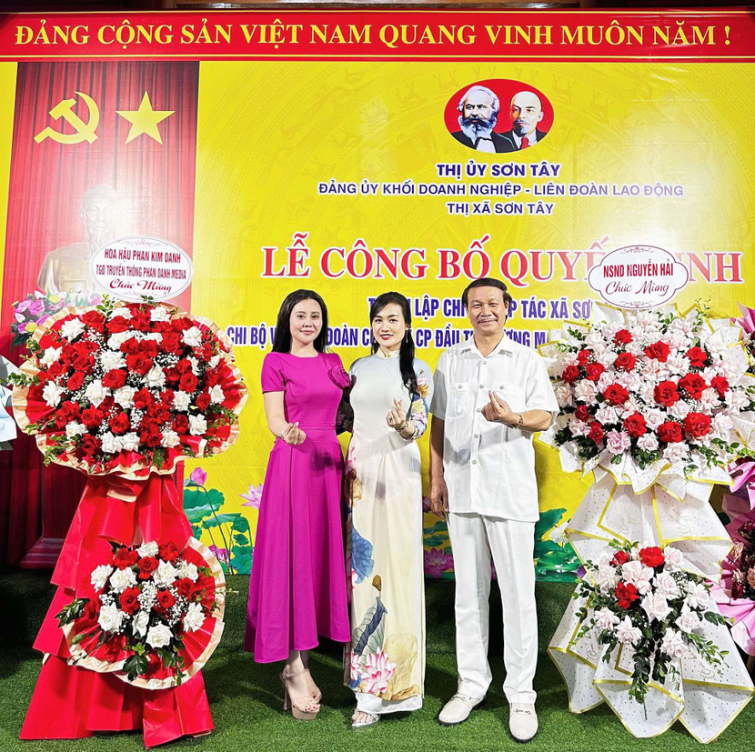 Cùng có mặt để chúc mừng Vũ Hoa nhận nhiệm vụ ý nghĩa này còn có Hoa hậu Phan Kim Oanh và NSND Nguyễn Hải.