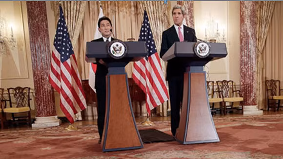 Ông John Kerry khẳng định, Mỹ và Nhật Bản đã cam kết hợp tác an ninh chặt chẽ đồng thời nhấn mạnh cam kết của Mỹ bảo vệ Nhật Bản nếu nước này bị tấn công. “Tôi nhấn mạnh rằng Mỹ hơn bao giờ hết vẫn cam kết thực hiện nghĩa vụ với đồng minh Nhật Bản, bao gồm cả những liên quan đến Biển Hoa Đông” - ông Kerry phát biểu với báo giới sau cuộc gặp với người đồng cấp Kishida, đồng thời tái khẳng định, Mỹ không thừa nhận Vùng nhận dạng phòng không (ADIZ) mà Trung Quốc mới thiết lập trên Biển Hoa Đông. Ông Kerry cho biết Washington sẽ không thay đổi cách thức hoạt động trong khu vực. “Chúng tôi cam kết sẽ duy trì sự phát triển và ổn định ở khu vực châu Á - Thái Bình Dương” - ông Kerry nói.