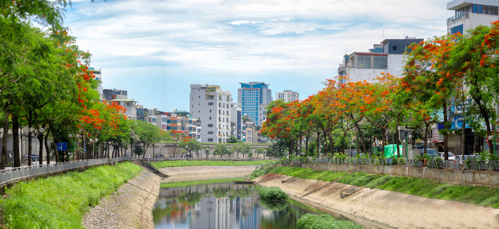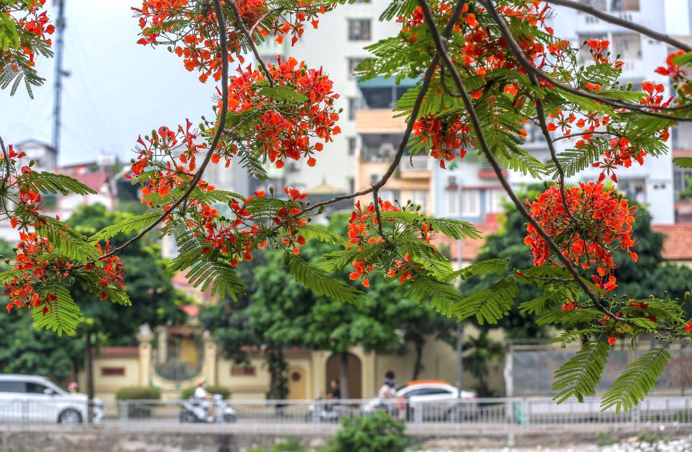 Hoa phượng thơ mộng nở rộ bên sông Tô Lịch