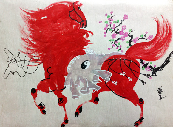 Ngồi trong không gian họa thất, thư phòng của họa sĩ Lê Trí Dũng, được ông bảo những lúc tĩnh lặng như thế này trong ngày xuân khi nhấc cây bút lông lên sắp dồn khí vào tấm giấy dó trắng ngà trước mặt, bao giờ cũng có một con ngựa trạm nâu sậm, vạm vỡ bờm xù, đai yên lục lạc, chuông khánh loảng xoảng, bóng loáng mồ hôi chạy nước kiệu tới bên ông. Gọi là ngựa trạm vì nhiệm vụ của nó là thông tin, là hỏa tốc, phải chạy ngày chạy đêm cùng những người lính bé nhỏ, rắn như sắt, nhanh như ngựa và phải vượt qua đồng cỏ, sông suối, dốc đèo, bản làng… Nhưng bao giờ khi chạy về phía ông nó cũng đèo thêm một cành hoa đào, loại đào bích, bông to, đỏ sẫm, cành đào còn rất nhiều nụ. Trong đêm, cái rét khi khí xuân về, tê tái, con ngựa rũ bụi đường trường, dậm chân hí vang, cành đào buộc cạnh túi công văn lúc lắc theo gió, xuân về rồi? Xuân và ngựa cùng về trong vất vả, niềm vui…