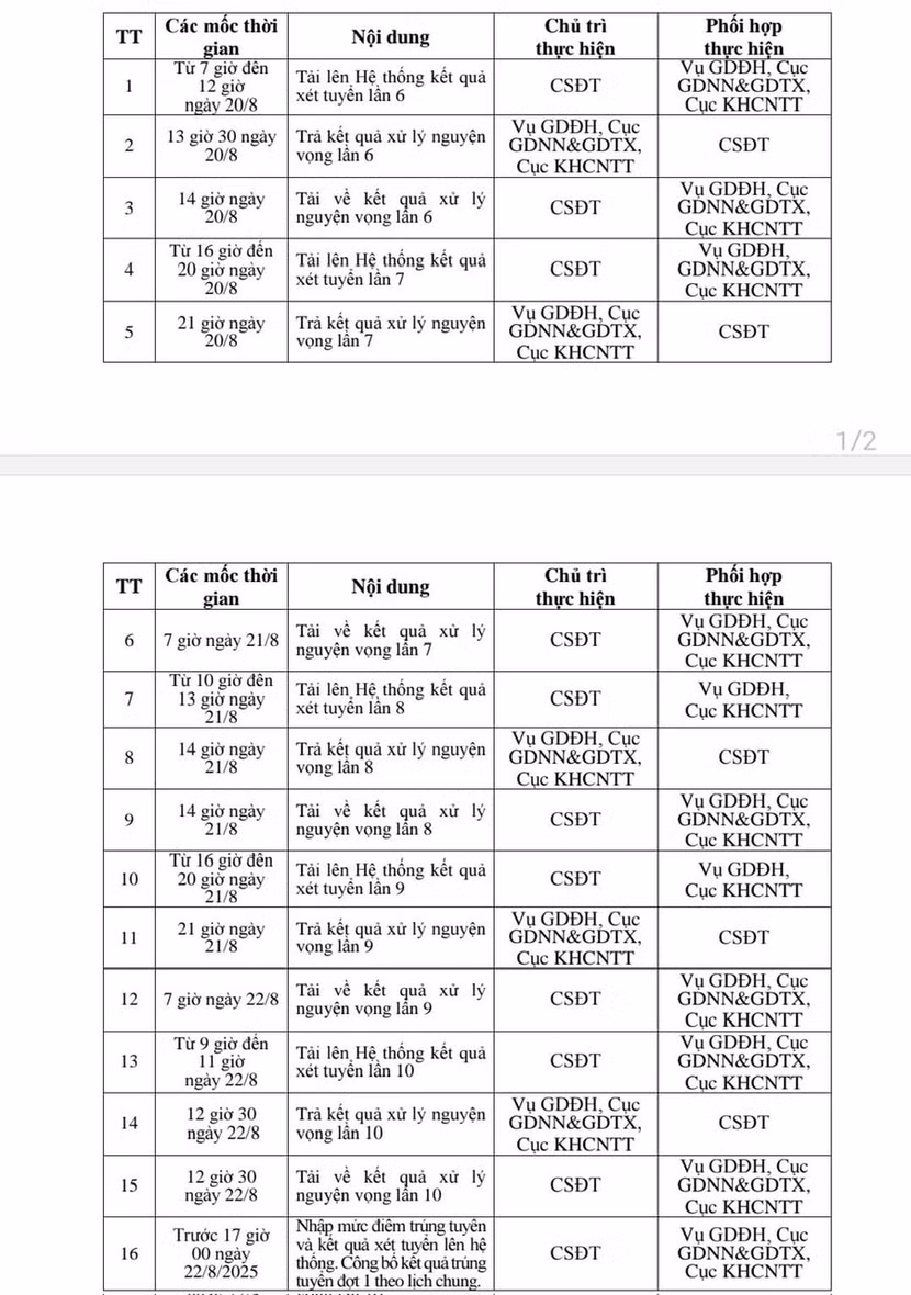 Chiều 20/8, Bộ GD-ĐT cho biết, thay vì lọc ảo 6 lần như kế hoạch ban đầu, hệ thống xét tuyển của Bộ GD-ĐT sẽ tăng số lần lọc ảo thành 10 lần, kết thúc vào 12h30 ngày 22-8. Lịch công bố điểm chuẩn đại học đợt 1 năm nay là 17h ngày 22-8.