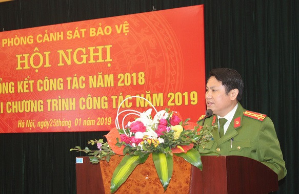 Thay mặt Đảng ủy - Ban Giám đốc CATP Hà Nội, Đại tá Nguyễn Văn Viện, Phó Giám đốc CATP ghi nhận và biểu dương những nỗ lực, thành tích CBCS Phòng Cảnh sát bảo vệ đã đạt được trong năm 2018.
