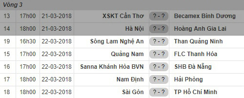 Như vậy, hai trận đấu sớm vòng 3 V-League 2018 gồm Hà Nội - HAGL và Cần Thơ - Bình Dương phải hoãn.