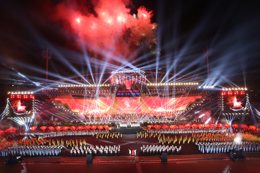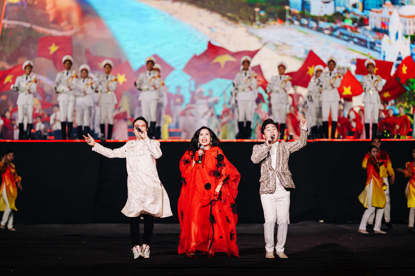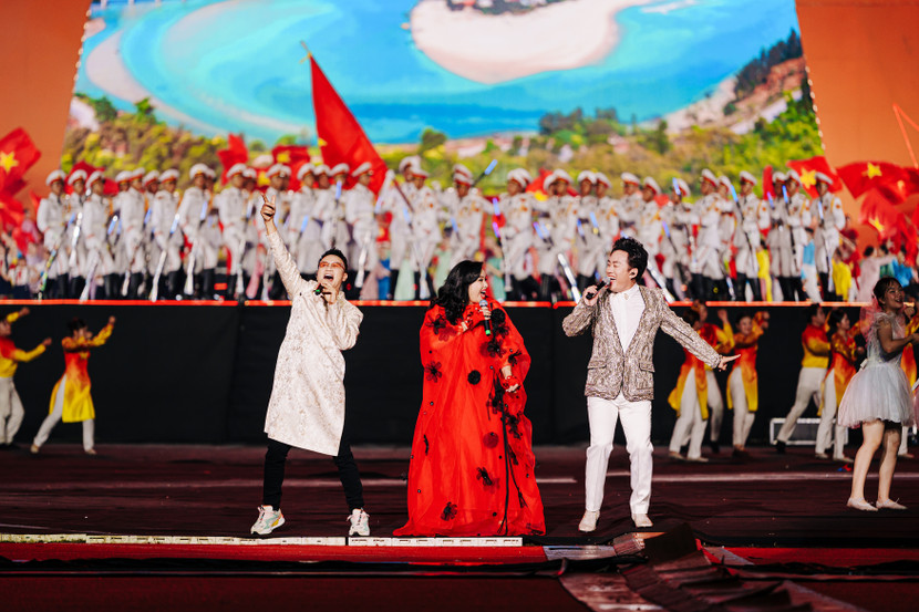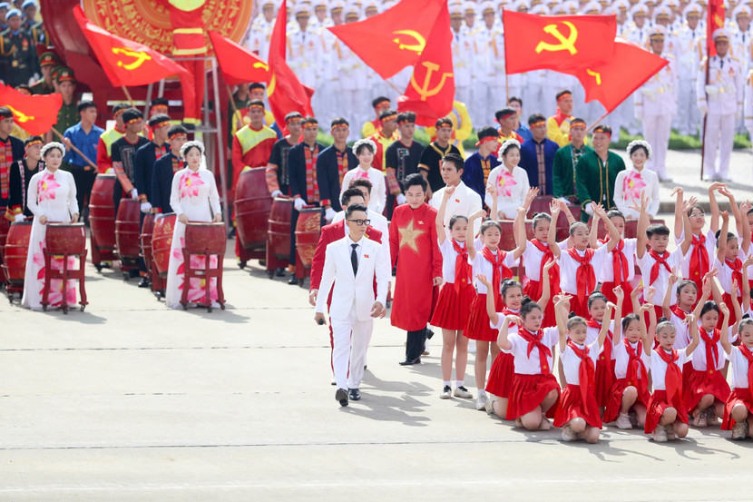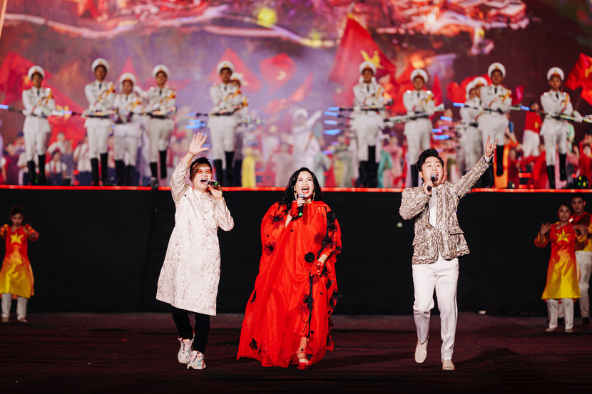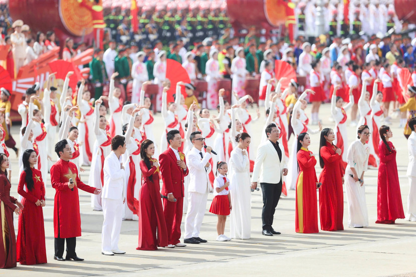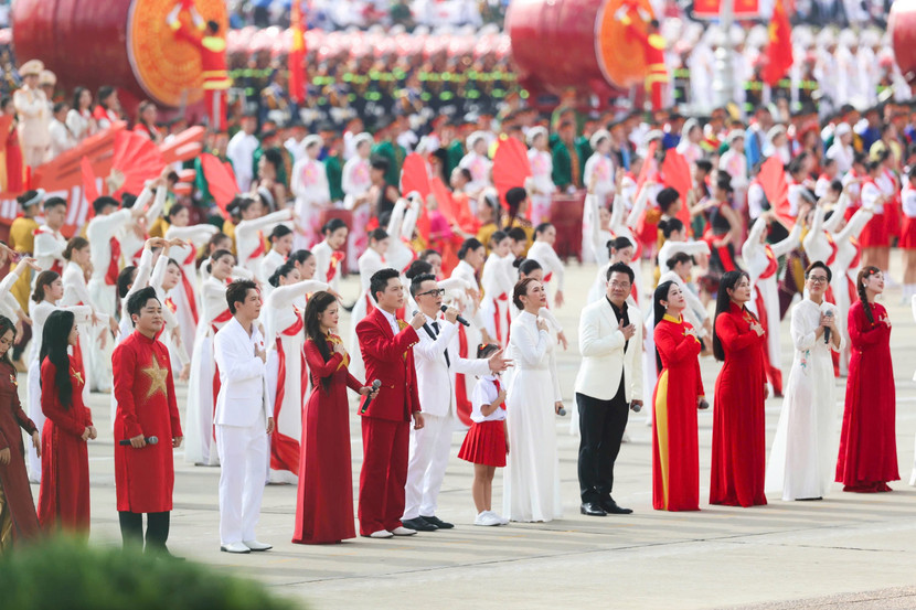 | Hoàng Bách tham gia màn đồng diễn “Việt Nam ơi, cùng bước tới vinh quang” cùng 80 nghệ sĩ và vũ đoàn, tạo nên màn trình diễn hoành tráng và giàu cảm xúc tại lễ diễu binh, diễu hành sáng 2-9 vừa qua |