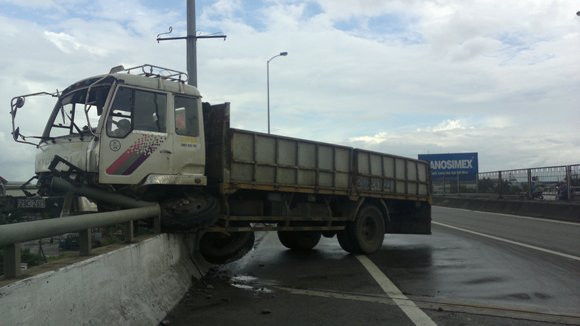 Tại hiện trường chiếc xe tải 5 tấn hiệu HUYNDAI BKS 29C - 24123 húc đổ rào chắn, nằm vắt vẻo trên… đầu người tham gia giao thông phía dưới. Lái xe là Nguyễn Ngọc Ngọt (SN 1987), quê Thanh Hóa, đã kịp nhảy ra khỏi xe và chỉ bị thương nhẹ.