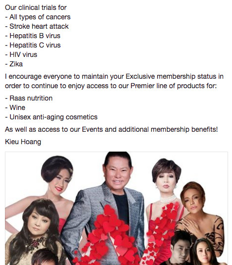 Đặc biệt quay trở lại với tuyên bố chia tay Ngọc Trinh được Hoàng Kiều đăng tải trên trang Fanpage của mình, vị tỷ phú này không quên nhắc đến một chương trình nghệ thuật mà ông đứng ra tổ chức tại Mỹ, cụ thể như sau: “Tôi muốn gửi lời cám ơn đến những thành viên trong CLB Hoàng Kiều vì các bạn đã mua vé ủng hộ chương trình 'Tạ Tình', hiện tại đêm nhạc đã được đổi tên thành 'Những ngày thơ mộng'. Với những ai đã mua vé nhưng không muốn tham gia và rút khỏi câu lạc bộ vì Ngọc Trinh, chúng tôi sẽ hoàn trả lại chi phí. Tôi xin lỗi vì sự bất tiện này".