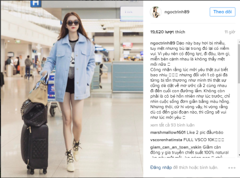 Trước đó, Ngọc Trinh từng chia sẻ những dòng viết tình cảm dành cho Hoàng Kiều viết trên Instagram: "Dạo này bay hơi nhiều, mệt nhưng bù lại trong đó lại có niềm vui. Vì yêu nên có động lực, đi đâu, làm gì, miễn bên cạnh nhau là không thấy mệt mỏi nữa”.