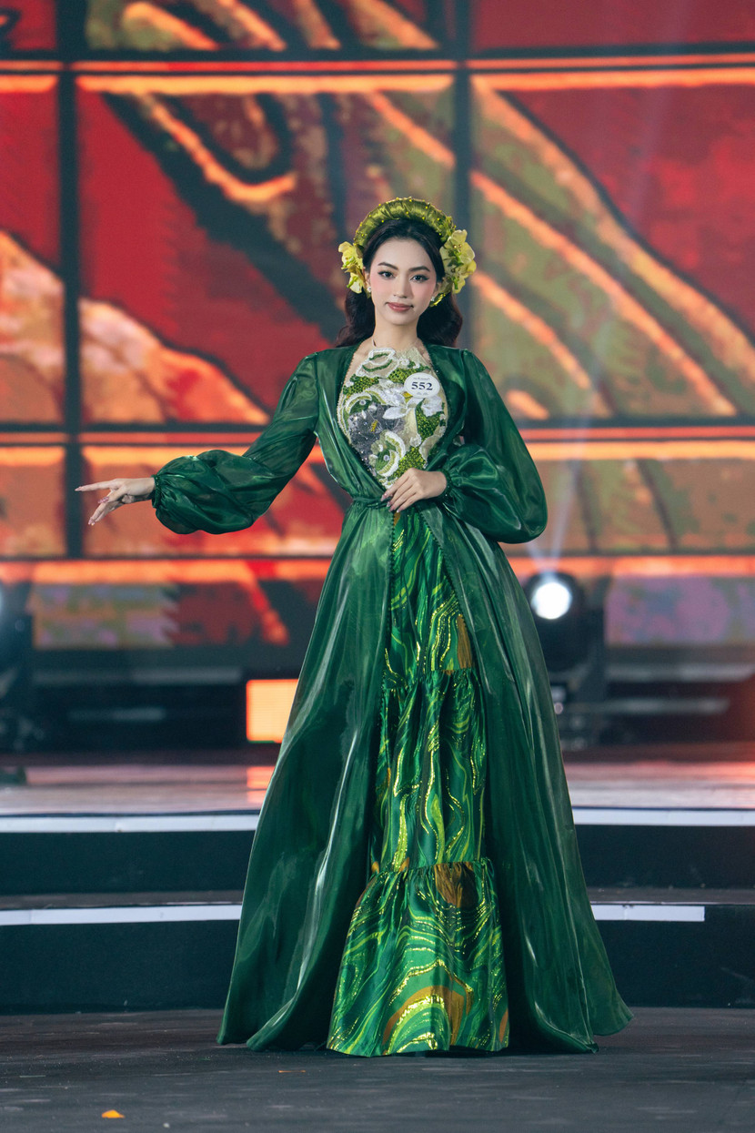 Nối tiếp chương trình, 28 đóa hoa duyên dáng cùng khoe sắc rạng ngời trong phần thi Trang phục Truyền thống, lấy cảm hứng từ áo yếm Kinh Bắc - Bắc Ninh trong BST mang tên “Em ơi em à” của NTK Cao Minh Tiến. Trong sắc xanh thanh khiết, nhóm thí sinh đầu tiên đến từ đội mentor Bùi Quỳnh Hoa rạng ngời trên sân khấu trình diễn bộ sưu tập áo yếm mang hơi thở của thiên nhiên và tuổi trẻ, gợi hình ảnh những ước mơ trong veo , những khát vọng thanh xuân đang vươn mình tỏa sáng như kể nên câu chuyện về niềm tin, sự kiên định trên hành trình tím kiếm chính mình.