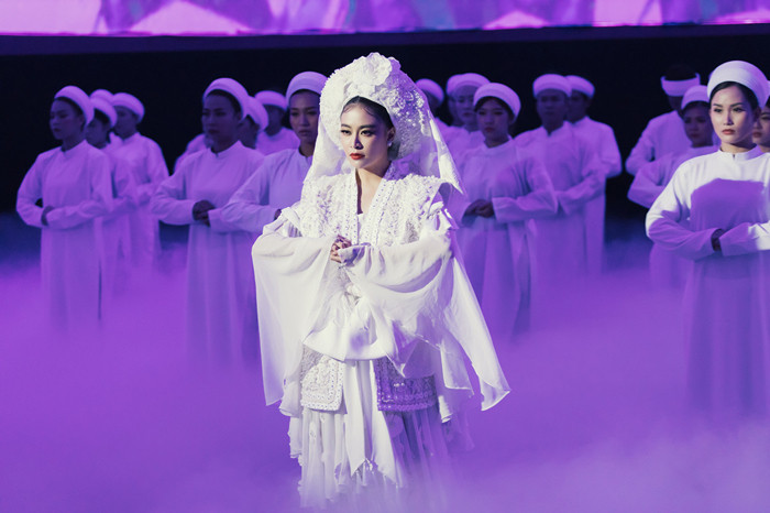 Xuất hiện trong MV, Hoàng Thùy Linh diện bộ trang phục màu trắng, đầu đội chiếc mấn cách điệu có tấm khăn trùm bên ngoài, kèm theo chiếc bông tai, tất cả đều màu trắng. Đây cũng là gam màu tượng trưng cho vị Thánh cô thuộc về miền Thoải phủ (miền sông nước).