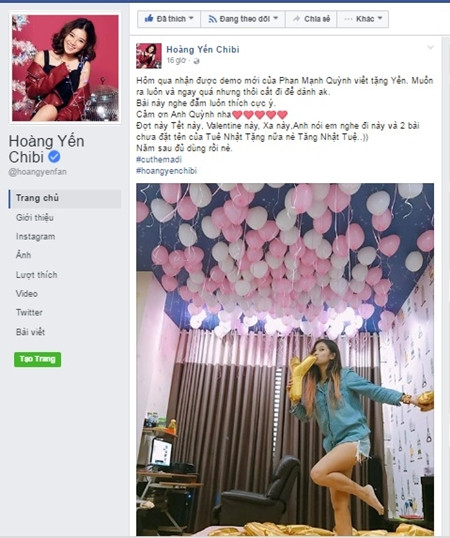 Giọng ca "Ngây ngô" hào hứng khoe được đàn anh Phan Mạnh Quỳnh tặng bài hát mới trên trang facebook cá nhân. Đây cũng là lời hứa mà nam ca sĩ xứ Nghệ thực hiện với Hoàng Yến Chibi, khi cả hai tham gia chương trình "The Mash Up – Hoán chuyển bất ngờ".