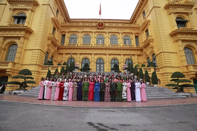 Phòng Hồ sơ CATP Hà Nội chụp ảnh lưu niệm trước Phủ Chủ tịch