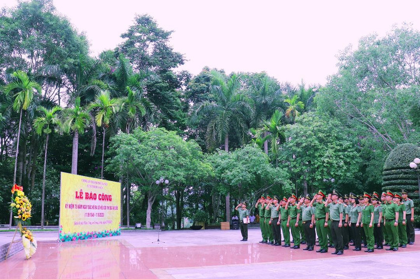 Đoàn công tác đã tỏ lòng thành kính, dâng hương, dâng hoa và tổ chức lễ báo công trước anh linh Chủ tịch Hồ Chí Minh vĩ đại và các Anh hùng liệt sỹ CAND.