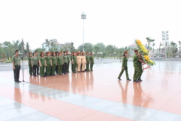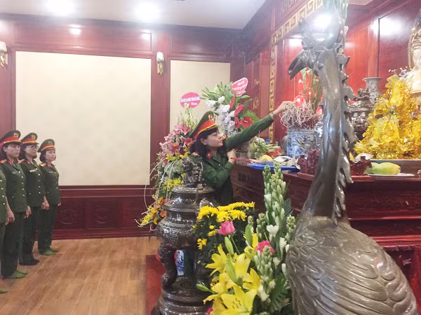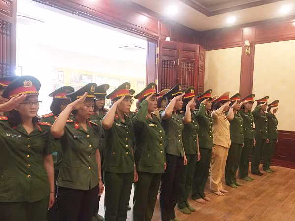 Thiếu tá Nguyễn Thị Vân Hạnh (Phó Chủ tịch Hội phụ nữ CATP Hà Nội) cùng đoàn Hội phụ nữ Cụm thi đua số 6 dành một phút mặc niệm tưởng nhớ, bày tỏ lòng biết ơn vô hạn đối với công lao của Chủ tịch Hồ Chí Minh cho sự nghiệp đấu tranh giải phóng dân tộc