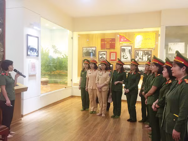 Các cán bộ hội viên Hội phụ nữ Cụm thi đua số 6 tham qua nhà lưu niệm Sáu điều Bác Hồ dạy CAND