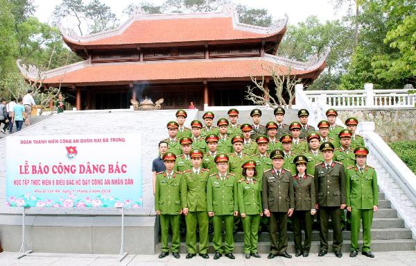 Đại úy Phan Thu Hiền – Bí thư Đoàn thanh niên CAQ Hai Bà Trưng cho biết, nằm trong những hoạt động chào mừng Tháng Thanh niên, đặc biệt đúng thời điểm kỷ niệm 70 năm Ngày Bác Hồ có sáu điều dạy CAND, Ban chấp hành đoàn cơ sở đã tổ chức cho đoàn viên thanh niên dâng hương tại Đài tưởng niệm các Anh hùng, liệt sỹ Công an Thủ đô và thăm quan bảo tàng Công an Hà Nội (tại phố Lý Thường Liệt, quận Hoàn Kiếm); và báo công dâng Bác tại khu di tích lịch sử K9 (huyện Ba Vì).
