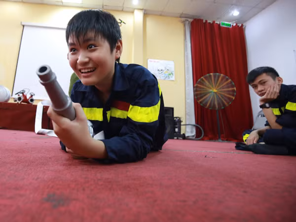 Đặng Hòa Khoa (13 tuổi) chia sẻ: “ Em tham gia chương trình này vì muốn thử thách bản thân cũng như rèn luyện thói quen ngăn nắp, nề nếp của người lính cứu hỏa. Ngoài ra, em còn được học cách hợp tác, tương trợ, làm việc nhóm trong các phần thi giữa các đội. Đồng đội của em rất đoàn kết, biết tương trợ lẫn nhau, yêu thương nhau”.
