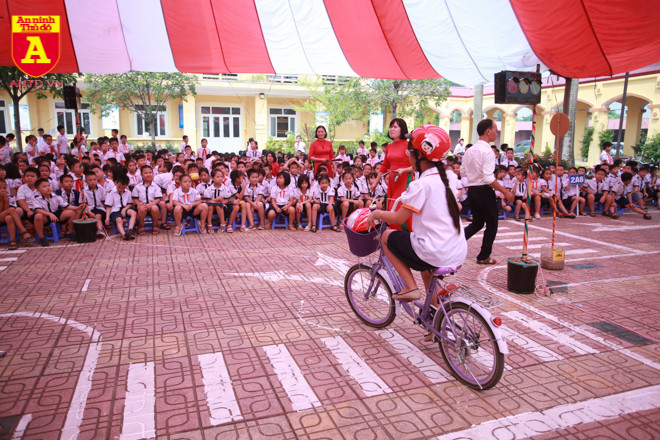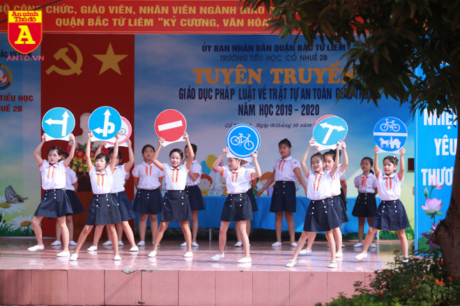 ANTD.VN - Ngày 1-10, trường Tiểu học Cổ Nhuế 2B (quận Bắc Từ Liêm, Hà Nội) phối hợp với khoa Cảnh sát Giao thông đường bộ, đường sắt, Học viện Cảnh sát nhân dân tổ chức chương trình "Tuyên truyền giáo dục pháp luật về trật tự an toàn giao thông năm học 2019-2020" nhằm hưởng ứng tháng cao điểm về an toàn giao thông.