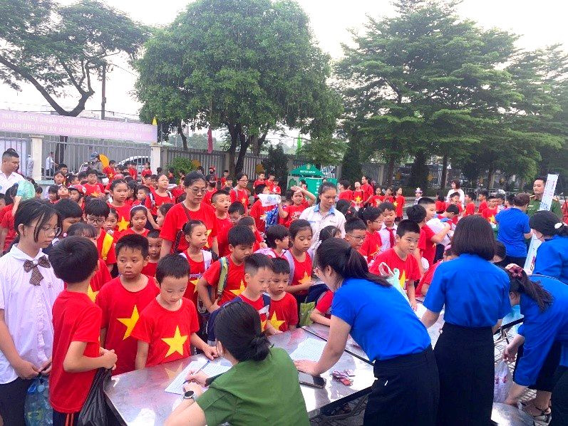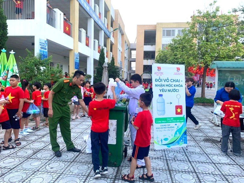 Tham gia chương trình, nhiều phụ huynh và học sinh mang theo chai nhựa đã qua sử dụng để nhận được móc khoá in biểu tượng yêu nước. Hoạt động nhằm lan tỏa thông điệp bảo vệ môi trường gắn với giáo dục tinh thần trách nhiệm công dân.