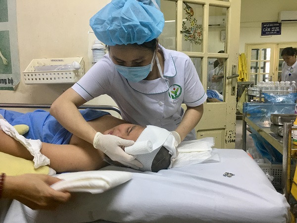 Tại BV Việt Đức, bệnh nhân được chăm sóc vết thương vùng đầu, khi ổn định sẽ được mổ tạo hình hộp sọ