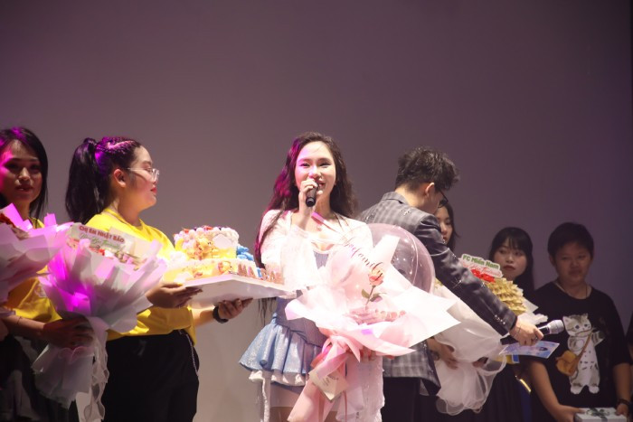 Nhạc sĩ Dương Khắc Linh và bà xã Sara Lưu cũng có mặt tại đêm nhạc, dành nhiều lời chỉ bảo và ủng hộ học trò trở lại. Á hậu Dương Yến Ngọc, top 10 Miss Cosmo Vietnam 2023 Kiều Thị Thuý Hằng, rapper Tiến Nhỏ… cũng có mặt để ủng hộ sự trở lại của Mây Bae Hà Vy.